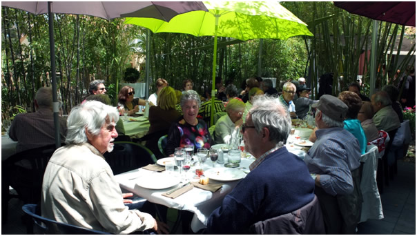 Al migdia vam anar tots junts al jardí del restaurant Al Català de Ceret (fotos) on un menú especial de la cirera els esperava, i que va ser molt apreciat. El “sol dels pintors” de Ceret i un canigonenc de primavera eren també de la festa.