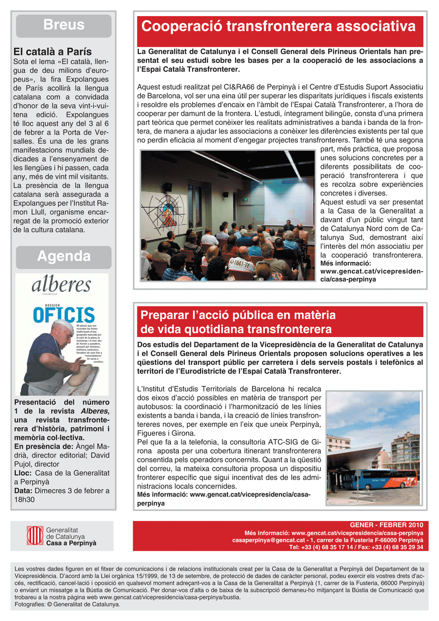 | e-mail : info@portal-vallespir.com Centre Cultural Català del Vallespir © 2004-2009 Seu administrativa: Ajuntament de Sant Joan Pla de Corts. Avinguda de l'Albera - 66400 Seu social: 7, Av G. Clémenceau 66400 Ceret - 2, Rue Pierre Camo 66400 Ceret - telèfons: 04.68.87.60.90 (President) 04.68.87.32.35 (Secretària) |