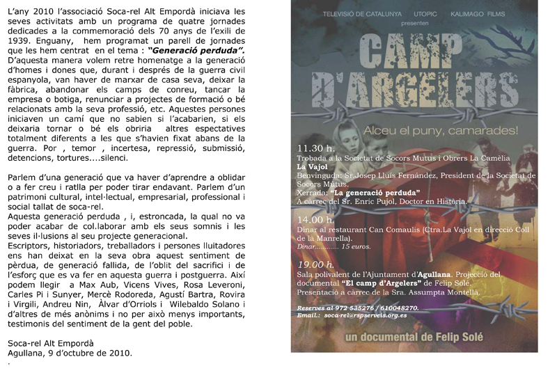 | e-mail : info@portal-vallespir.com Centre Cultural Català del Vallespir © 2004-2009 Seu administrativa: Ajuntament de Sant Joan Pla de Corts. Avinguda de l'Albera - 66400 Seu social: 7, Av G. Clémenceau 66400 Ceret - 2, Rue Pierre Camo 66400 Ceret - telèfons: 04.68.87.60.90 (President) 04.68.87.32.35 (Secretària) |